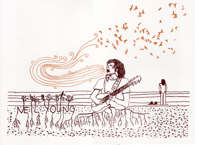 Each music screen print is based from an original illustration created after listening to the music depicted. Imagery heard within the artists’ various albums were drawn, designed, and transformed with color through the screen- printing process.